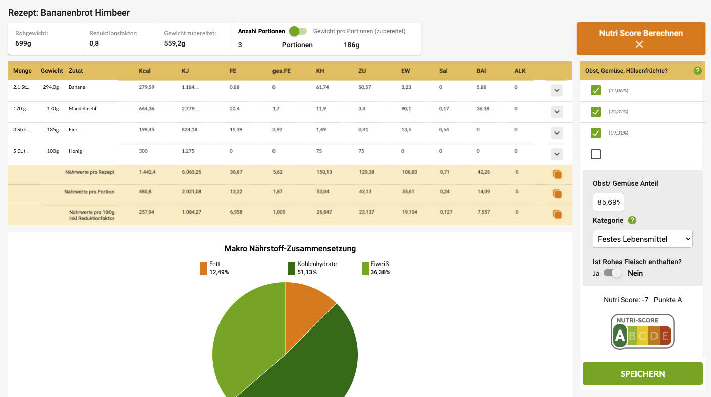 Rezeptrechner PRO Business verwendet hierfür den neuesten Nutri Score Algorithmus aus 2024.